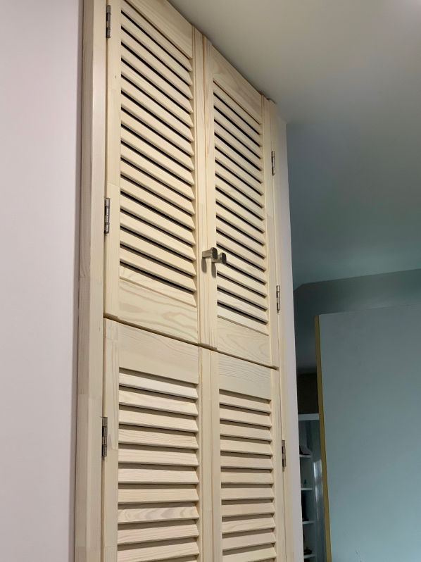 Встроенный шкаф с жалюзийными дверями.